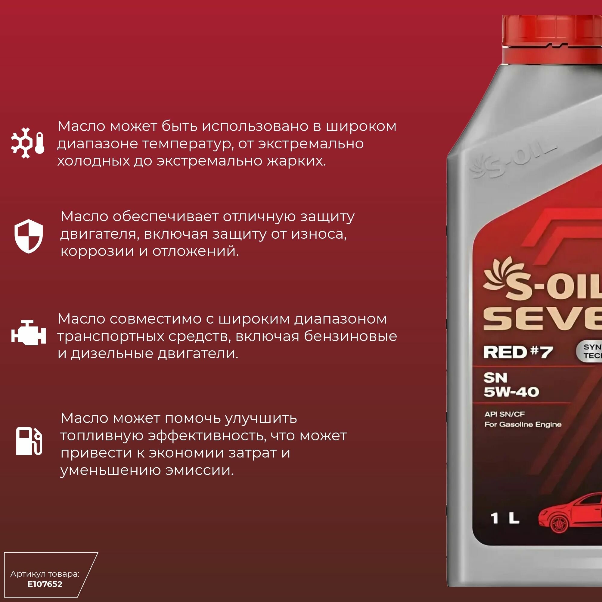 S-OIL E107652 S-OIL Масло моторное SEVEN RED #7 SN 5W-40 1л