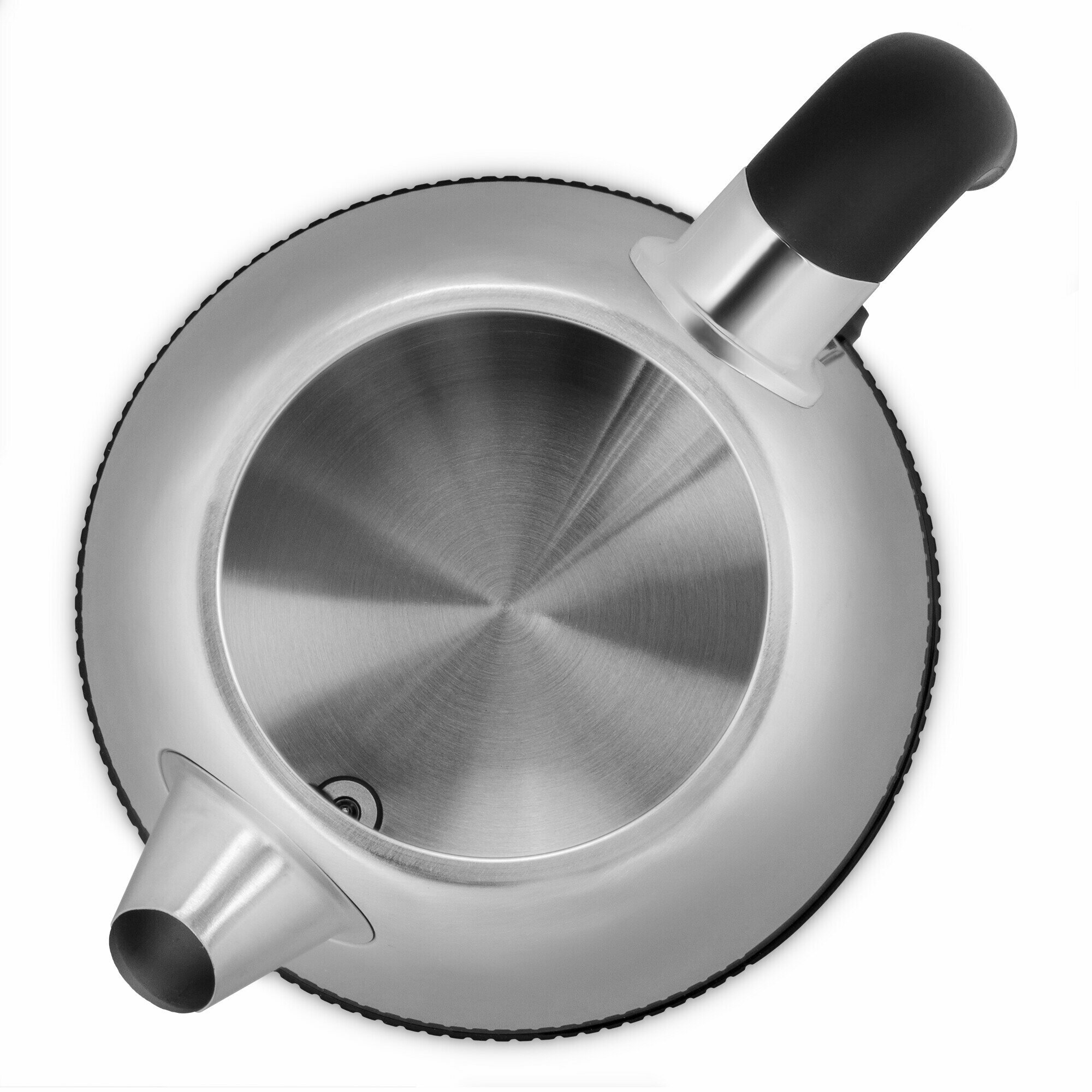 Отличный чайник, вроде маленький, простенький, но оказался вполне себе симпатичным и умным. Удобная сенсорная большая кнопка нажатия, можно выбрать любую температуру нагревания, можно поставить на режим поддержания любой температуры, можно просто посмотреть какая температура, когда температура снижается ниже 77 градусов, он предупреждает. Металл, снимающаяся крышка, вращение на 360. Если бы ещё были двойные стенки, было бы 10 балов.