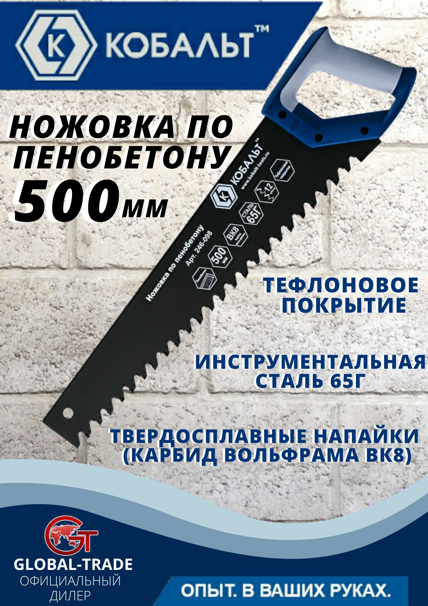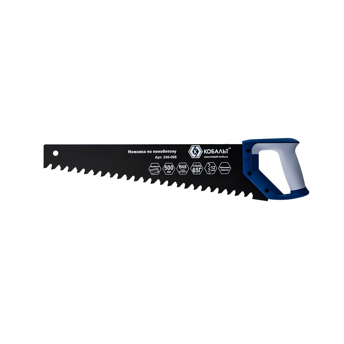 Кобальт Ножовка по пенобетону 500 мм, 1 TPI, тефлоновое покрытие твердосплавные напайки на зубья, двухкомпонентная рукоятка 246-098