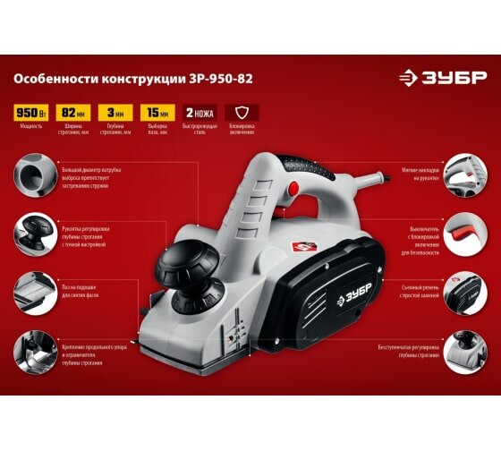 Рубанок электрический 950Вт 15000об/мин ЭР-950-82 ЗУБР интересное: