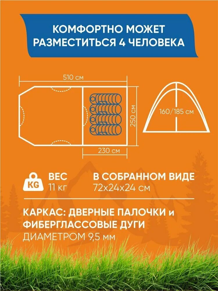 Кемпинговая 4-х местная палатка шатер MIMIR 1600W-4 интересное: