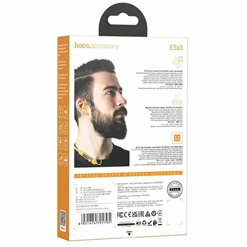 Гарнитура ES65 Bluetooth Sport Wireless Earphones HOCO желтая