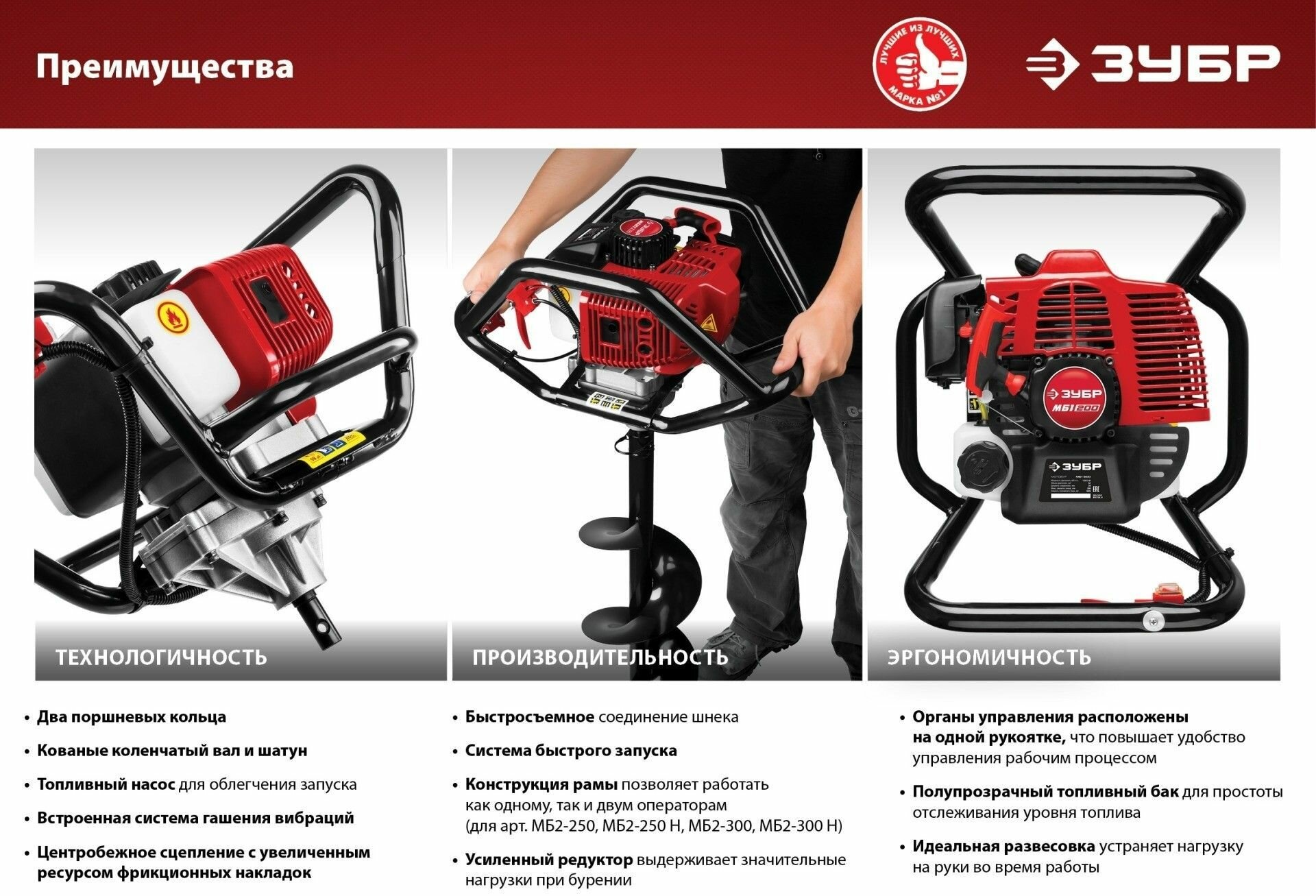 Мотобур (бензобур) со шнеком, d:60-200 мм, 52 см.куб., 1 оператор, ЗУБР. интересное:
