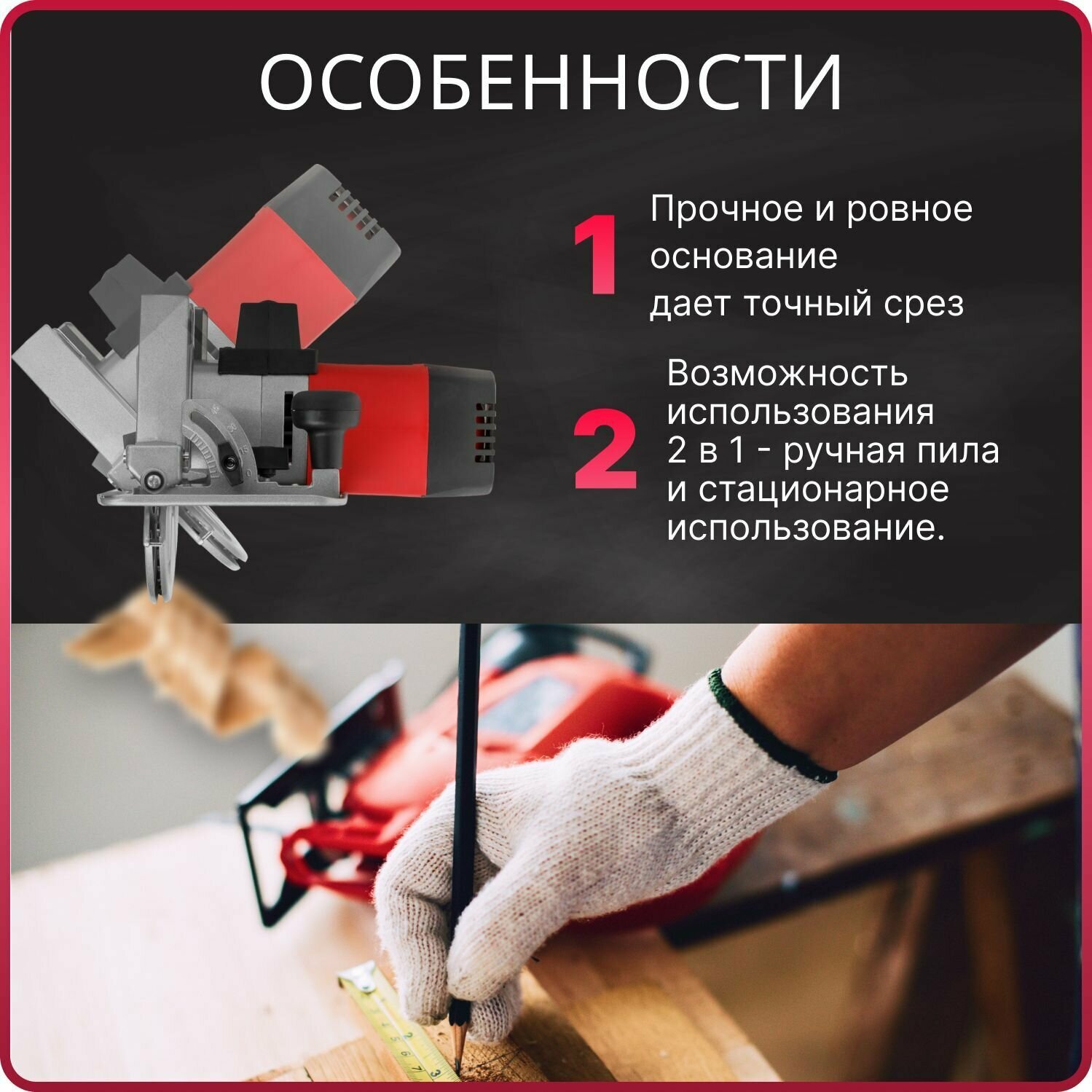 | Плюсы: | Удобно крепить, хорошая мощность, ровный пил! |