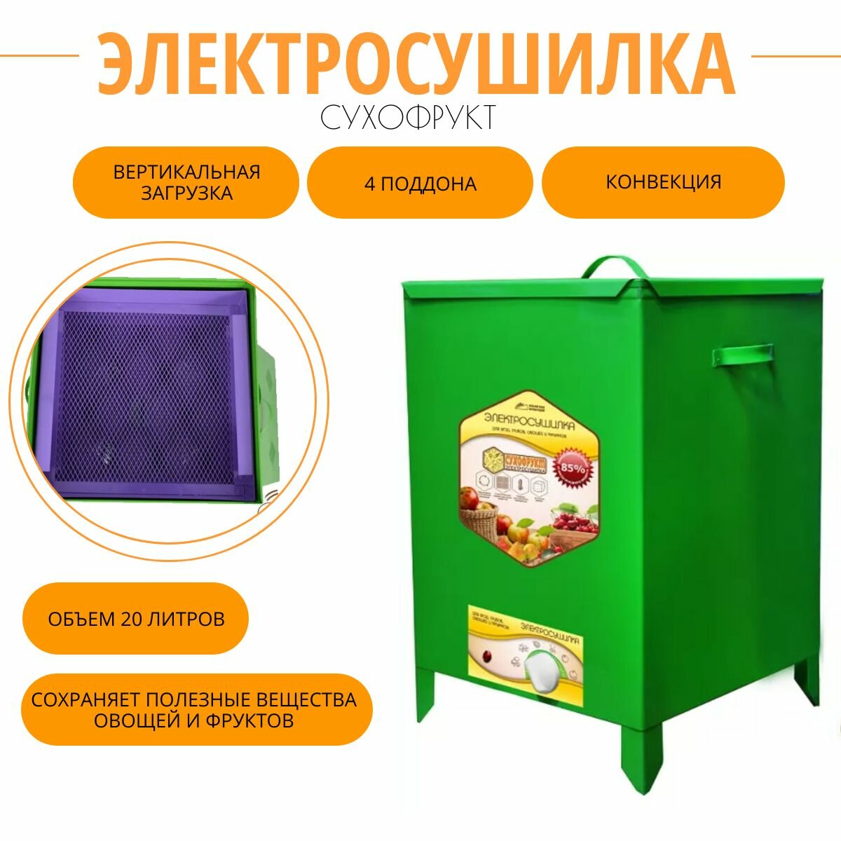 Купить Сушка Сухофрукт В02 20л 4 поддона металл квадрат корпус 500Вт УЗБИ