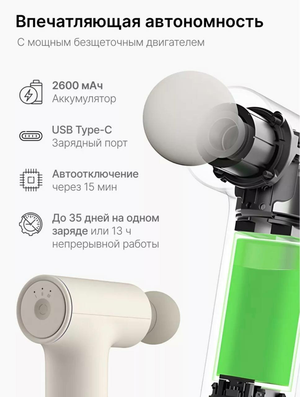 Массажер для тела Xiaomi Mi Massage Gun EU 3 режима скорости Бесшумная работа 45дБ 3 сменных насадки (BHR5608EU)