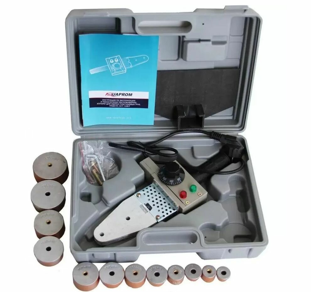 Аппарат для сварки пластиковых труб Aquaprom Р40/6 , 1500 Вт кейс пластик, 6 насадок интересное: