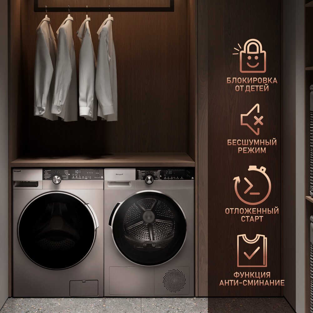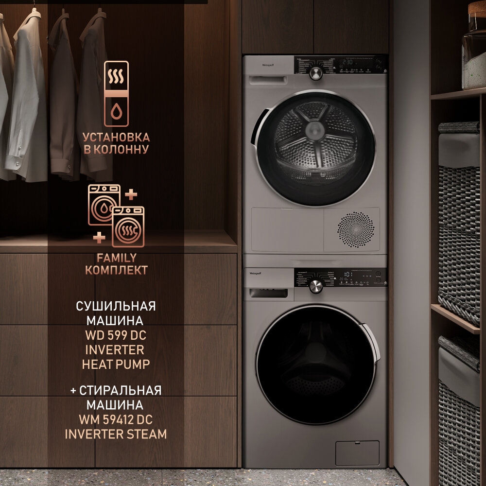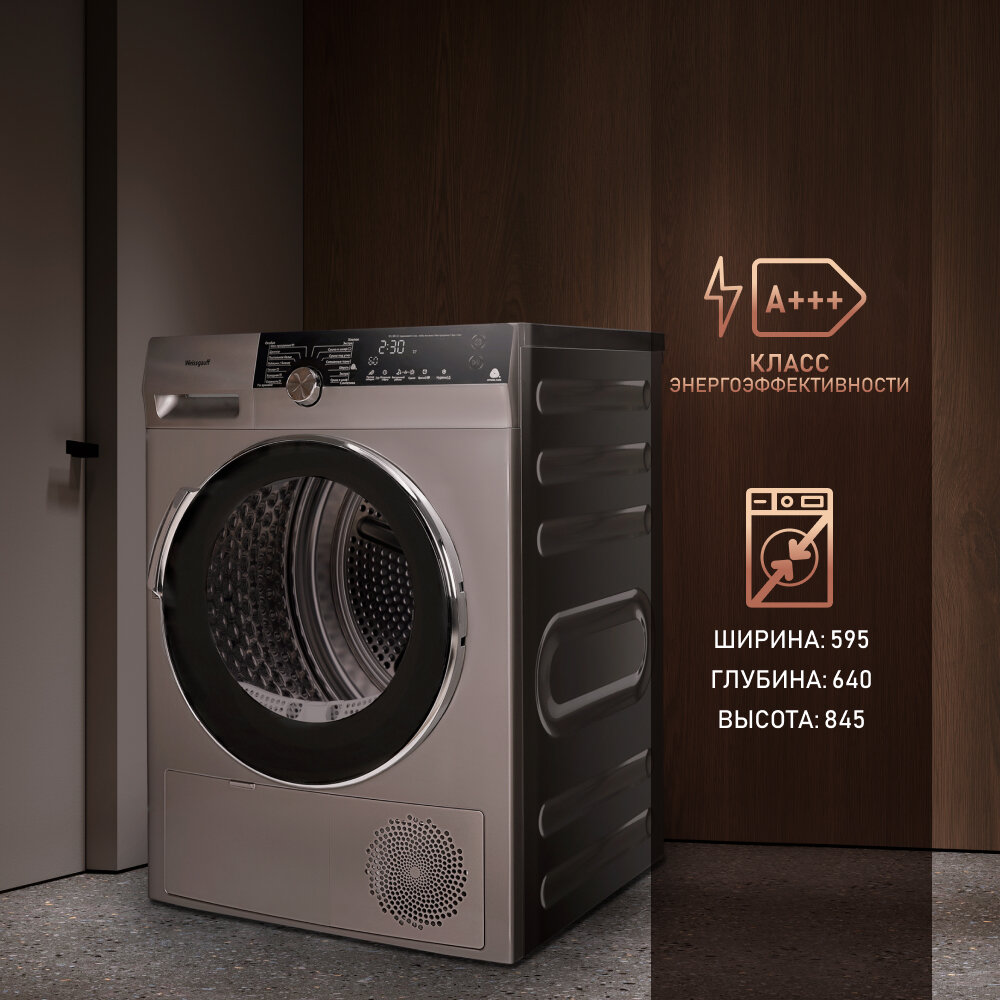 Сушильная машина с инвертором Weissgauff WD 599 DC Inverter Heat Pump Silver,3 года гарантии,Тепловая помпа, Установка в колонну. интересное: