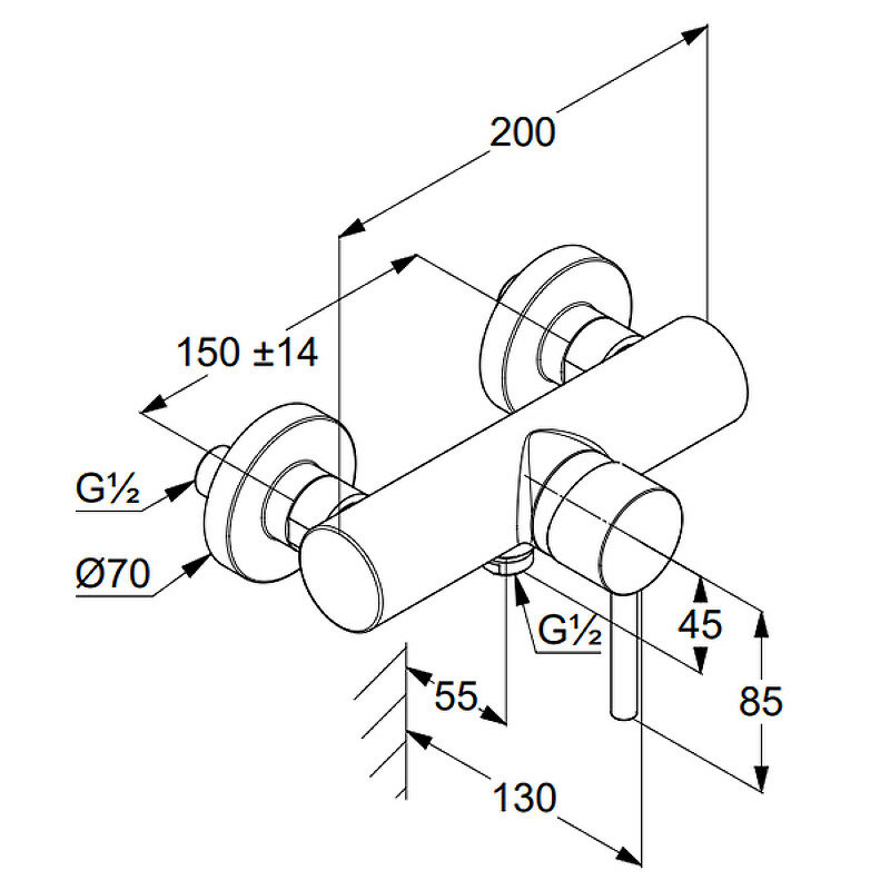 Настенный смеситель без излива Kludi Bozz, арт. 388313976, чёрный цвет, без лейки, матовый