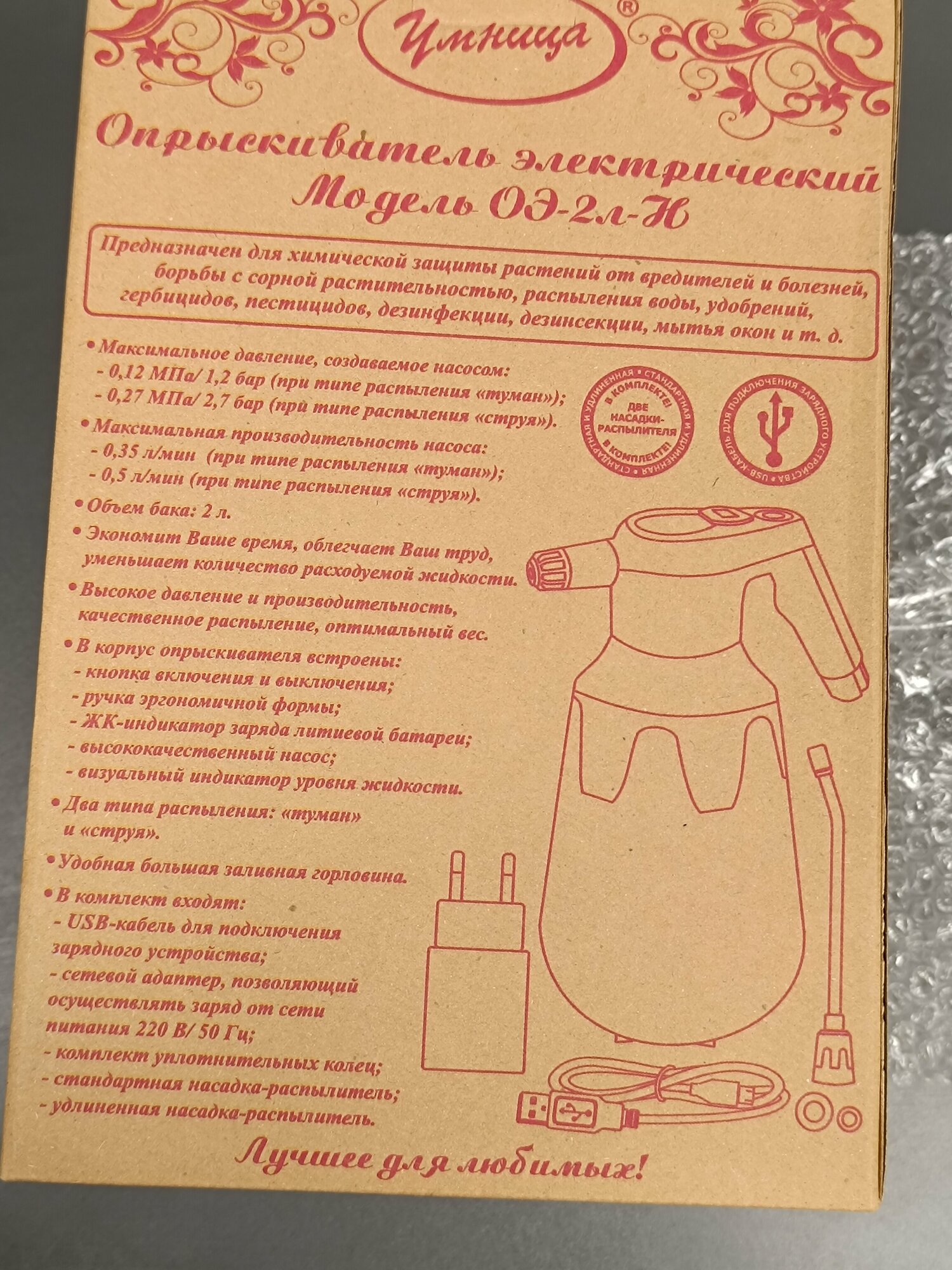 Опрыскиватель Умница 2л с блоком питания в комплекте интересное: