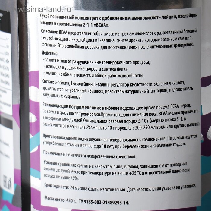 СохранитьSportLine Nutrition BCAA 2:1:1 (450 гр.) вишня интересное: