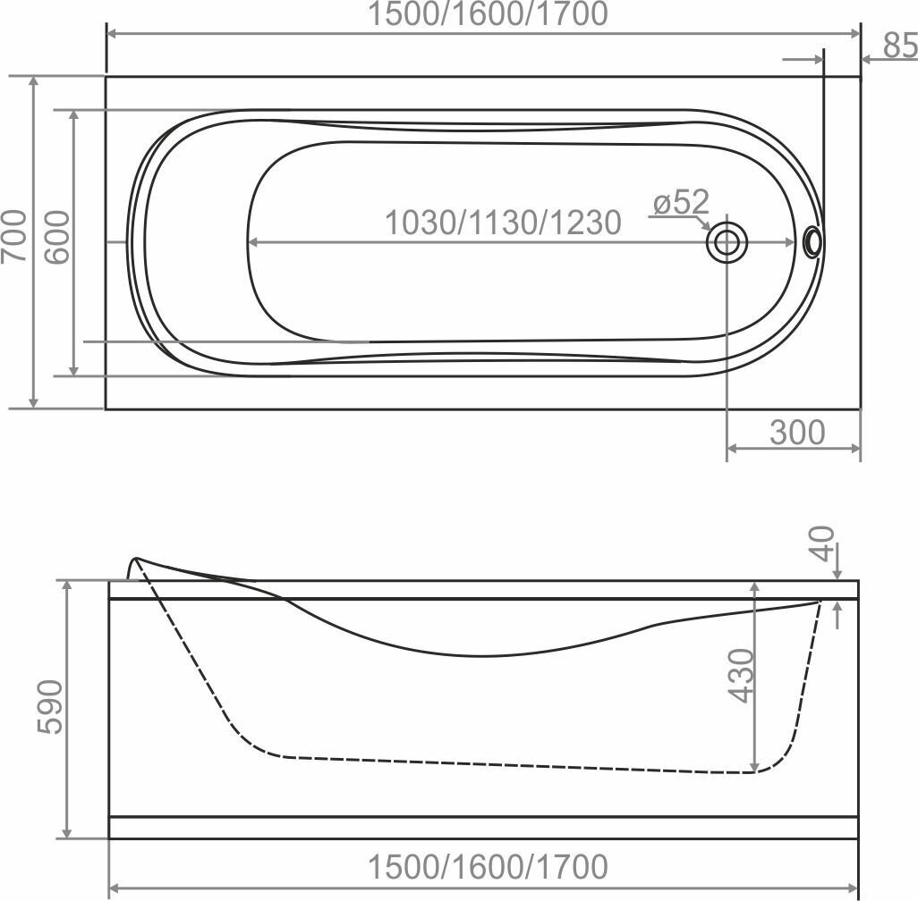Ванна акриловая DOMANI-Spa Classic. 150х70х59 см. без каркаса и экрана 4870280