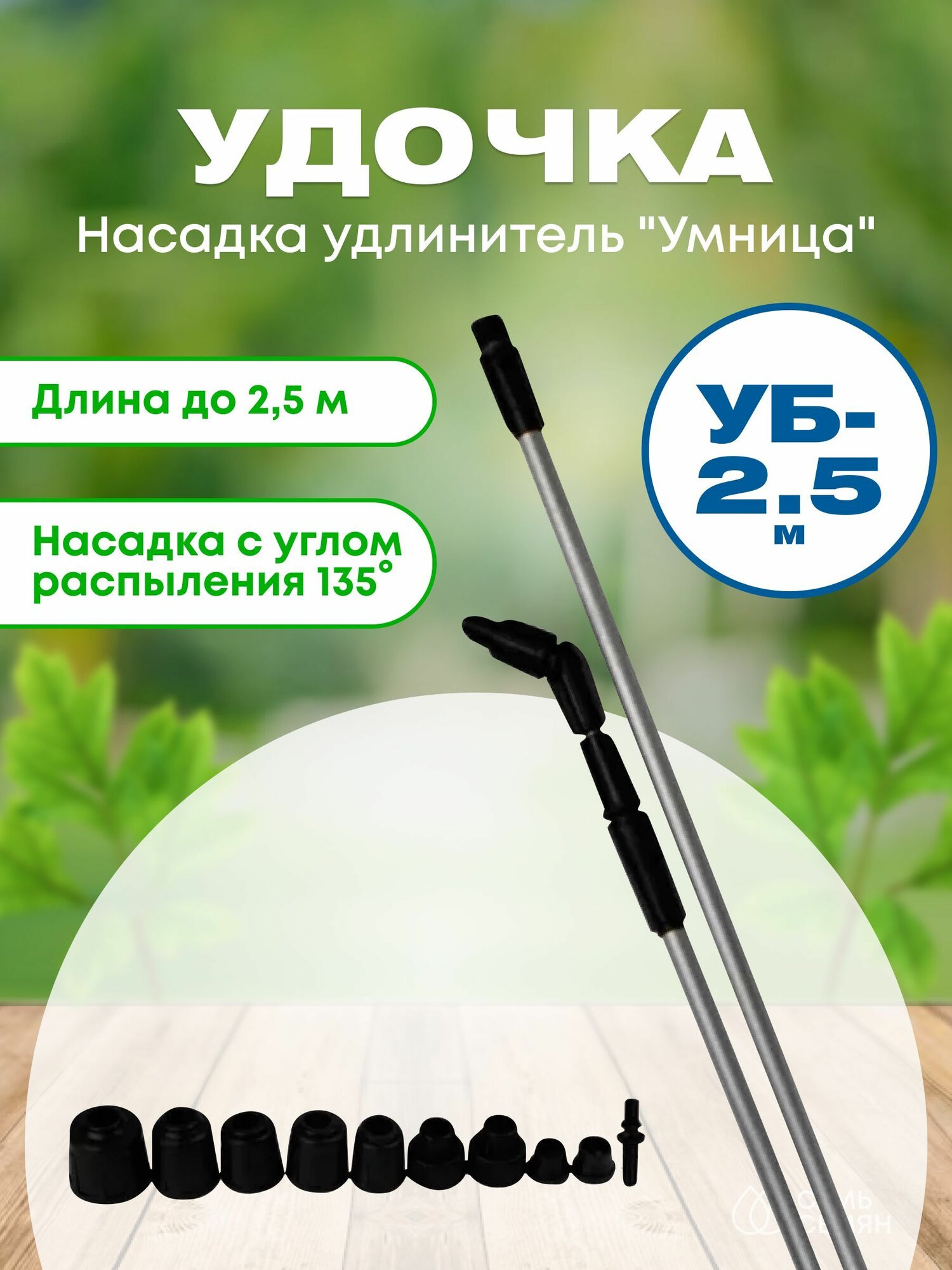 | Комплектация | Насадка удлинитель Умница УБ-2.5м для опрыскивателей, телескоп., комплект с ручкой, шлангом 1.6 метра и набор креплений |