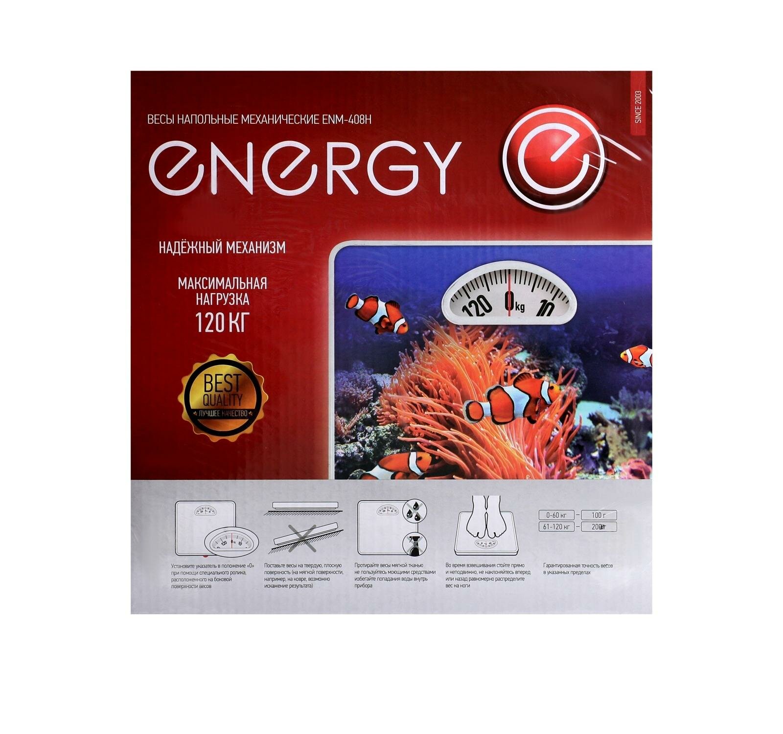 Весы напольные ENERGY ENМ-408H, механические, до 120 кг, картинка "рыбки"