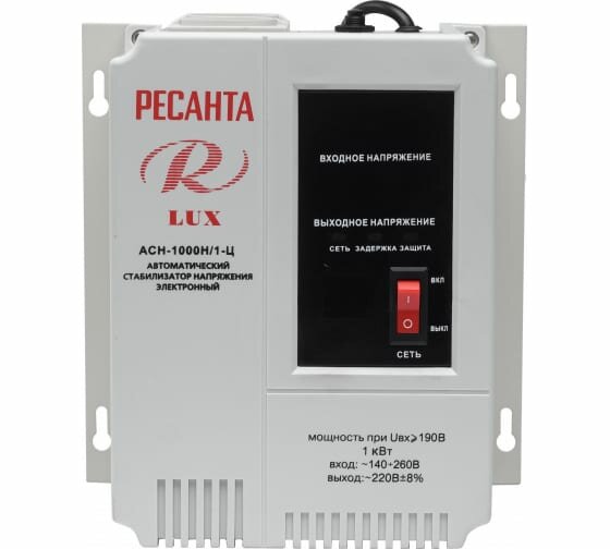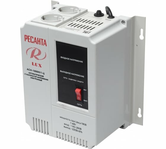 Стабилизатор напряжения АСН-1000 Н/1-Ц Ресанта Lux настенный (однофазный; 1000 Вт; 5,3А; 2 розетки; LED-дисплей; 140-260В)