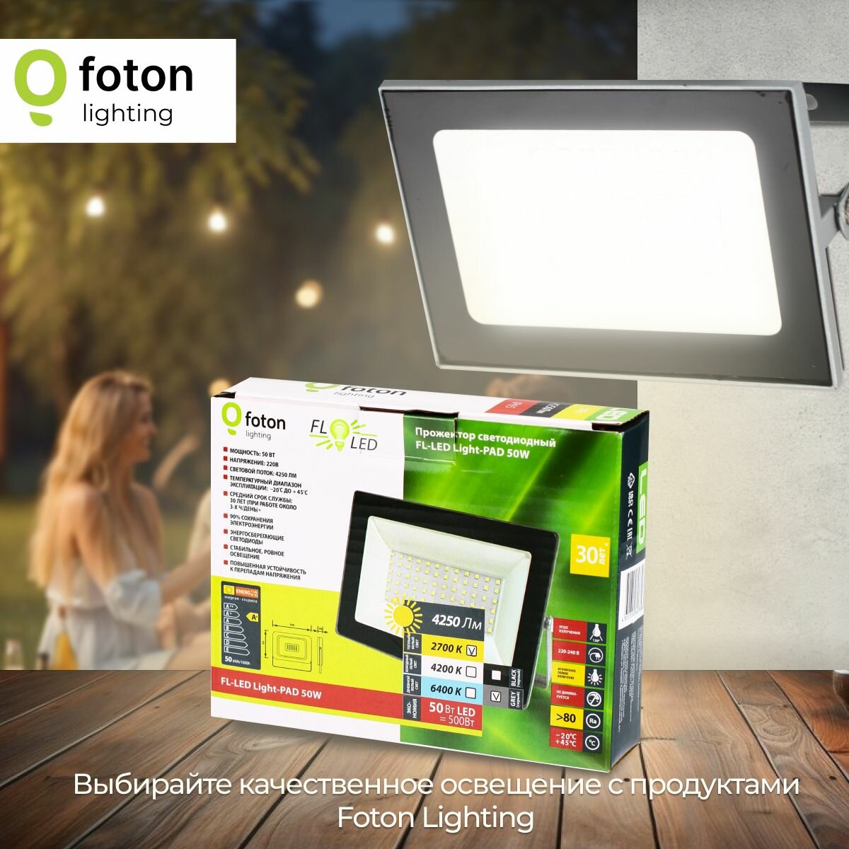 СохранитьПрожектор светодиодный уличный FL-LED Light-PAD 50 Ватт 2700K теплый свет, фонарь для освещения, серый корпус 4250лм IP65 Foton Lighting, набор 1шт. интересное: