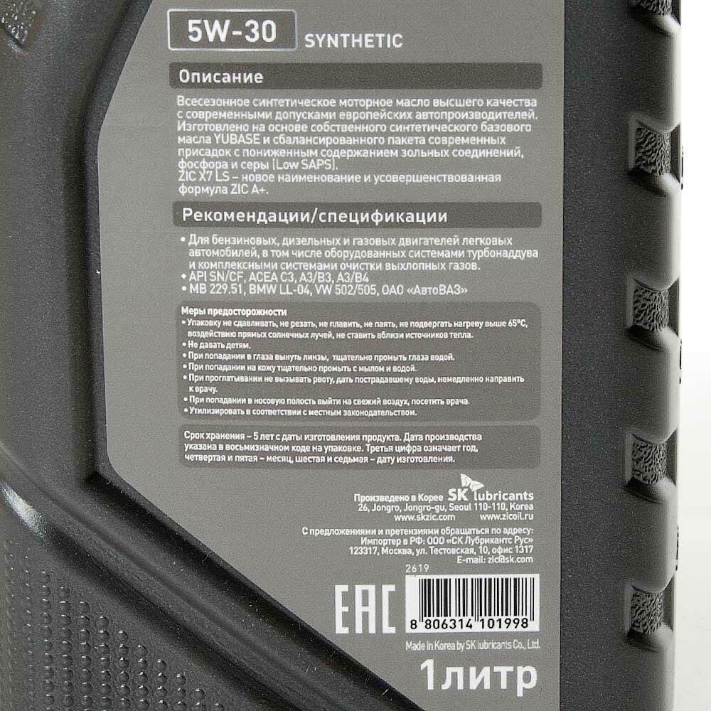 Zic Zic X7 Ls 5w-30/A Plus 5w-30 Sм (П/С) (1л) 132619/133051