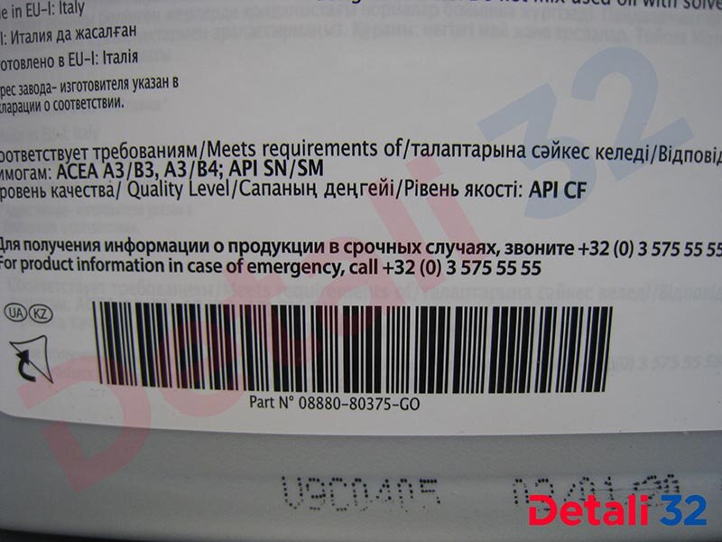Масло моторное TOYOTA SM/CF 5W40, 5литров европа А3/В4 08880-80835