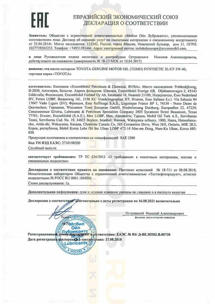 СохранитьМоторное масло Toyota Engine 5W-40 5 л интересное: