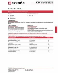Ниже Вы можете прочитать отзывы на Моторное масло Лукойл Люкс полусинтетическое SAE 5W-40, API Sl/cf, 1 л 19189 ., ознакомится с подробными характеристиками, посмотреть интересные обзоры и фотографии на Моторное масло Лукойл Люкс полусинтетическое SAE 5W-40, API Sl/cf, 1 л 19189 ..