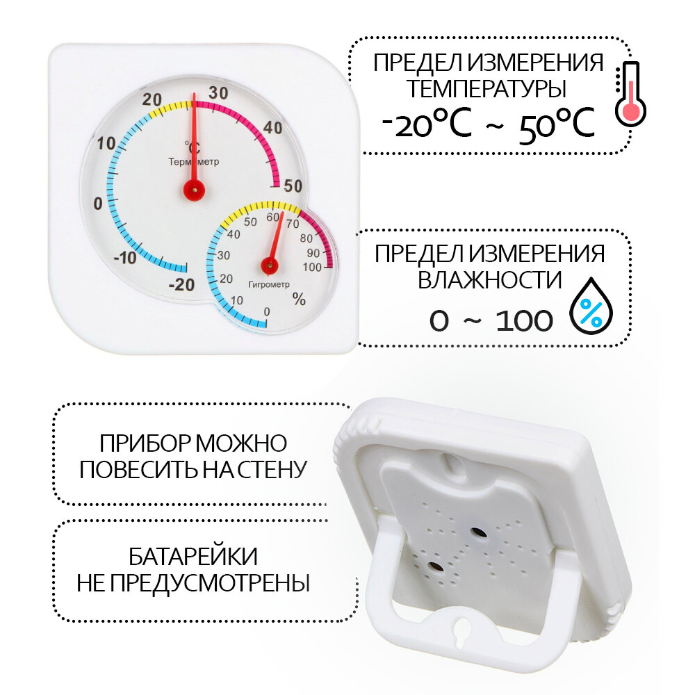 Термометр/ термометр гигрометр механический /INBLOOM 473-052 цвет белый интересное: