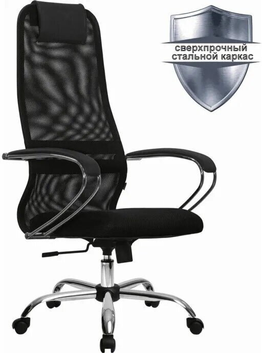 Кресло компьютерное для руководителей Метта SU-B-8, офисный стул на колесиках, с подголовником, ткань/сетка, черный