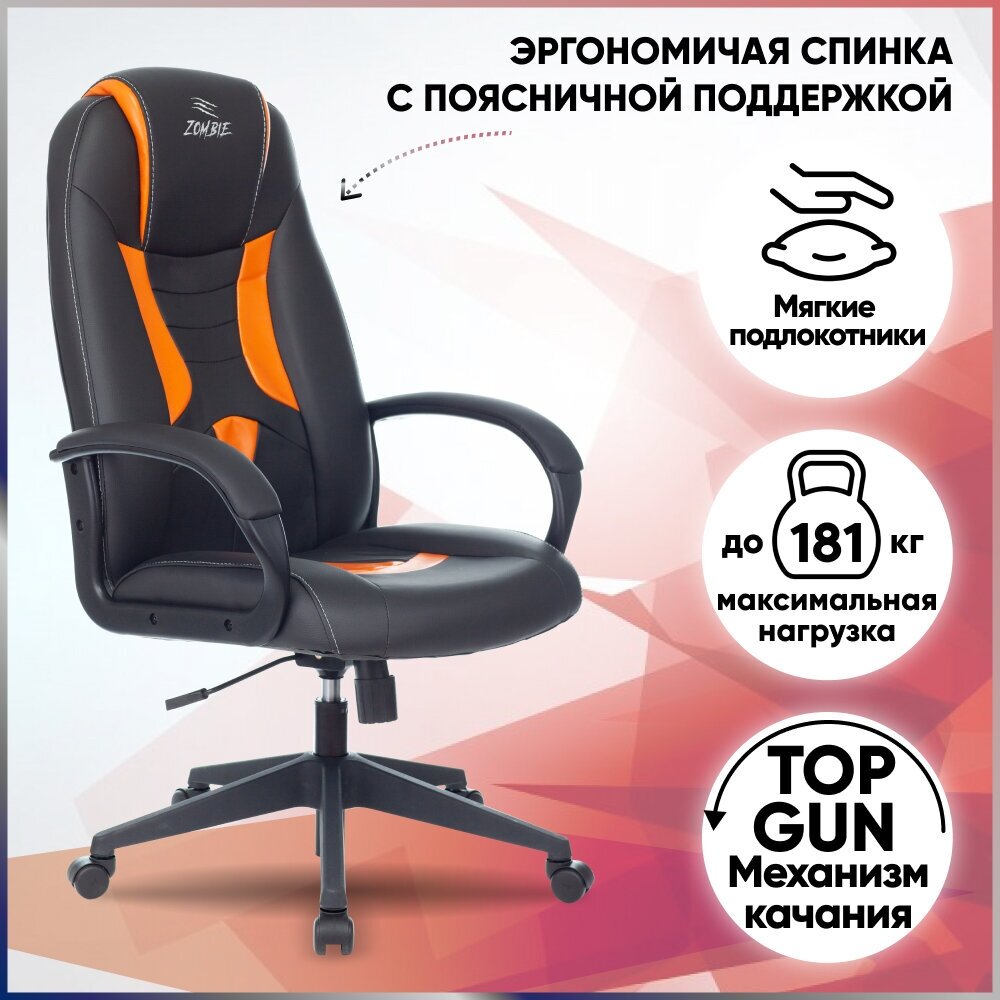 Кресло игровое ZOMBIE 8, на колесиках, эко.кожа, черныйоранжевый [zombie 8 orange]