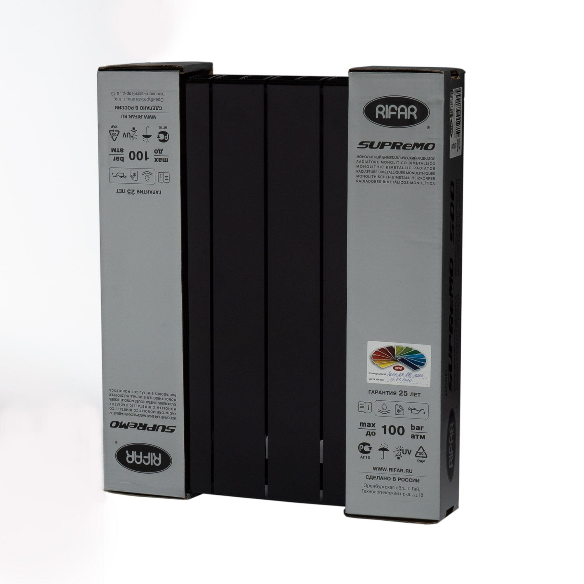 Радиатор биметаллический RIFAR SUPReMO 500 х 6 секций Ду 3/4 подключение боковое (RAL 9005) черный (R S50063/49005)