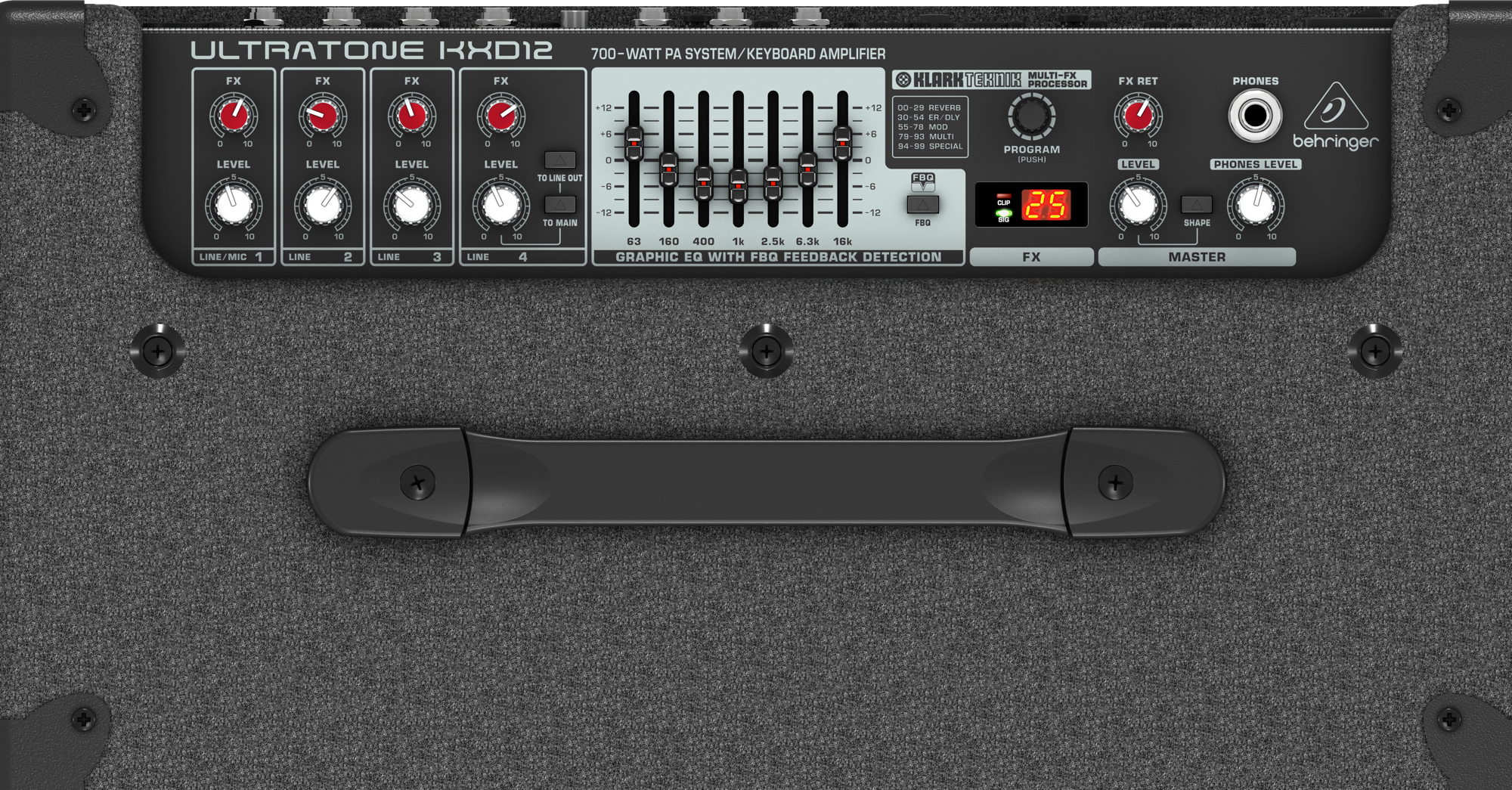 Behringer KXD15 клавишный усилитель 600Вт, 15", 4 канала, KLARK TEKNIK FX