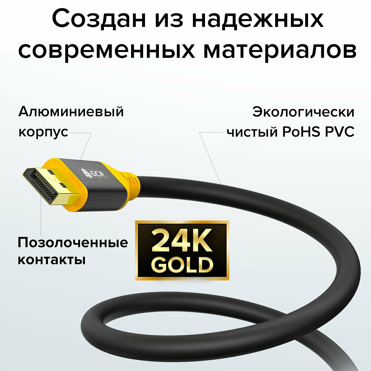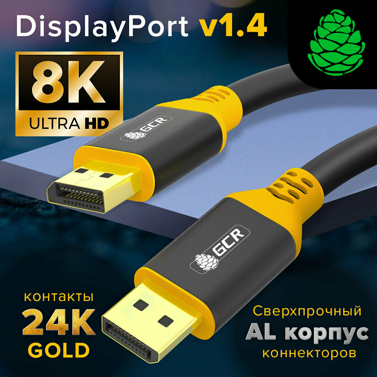 Кабель дисплей порт GCR 2 метра DisplayPort 1.4 поддержка 8K 60Hz 4K 165Hz Full HD для мониторов Samsung ACER BENQ LG HP AOC черно-желтый