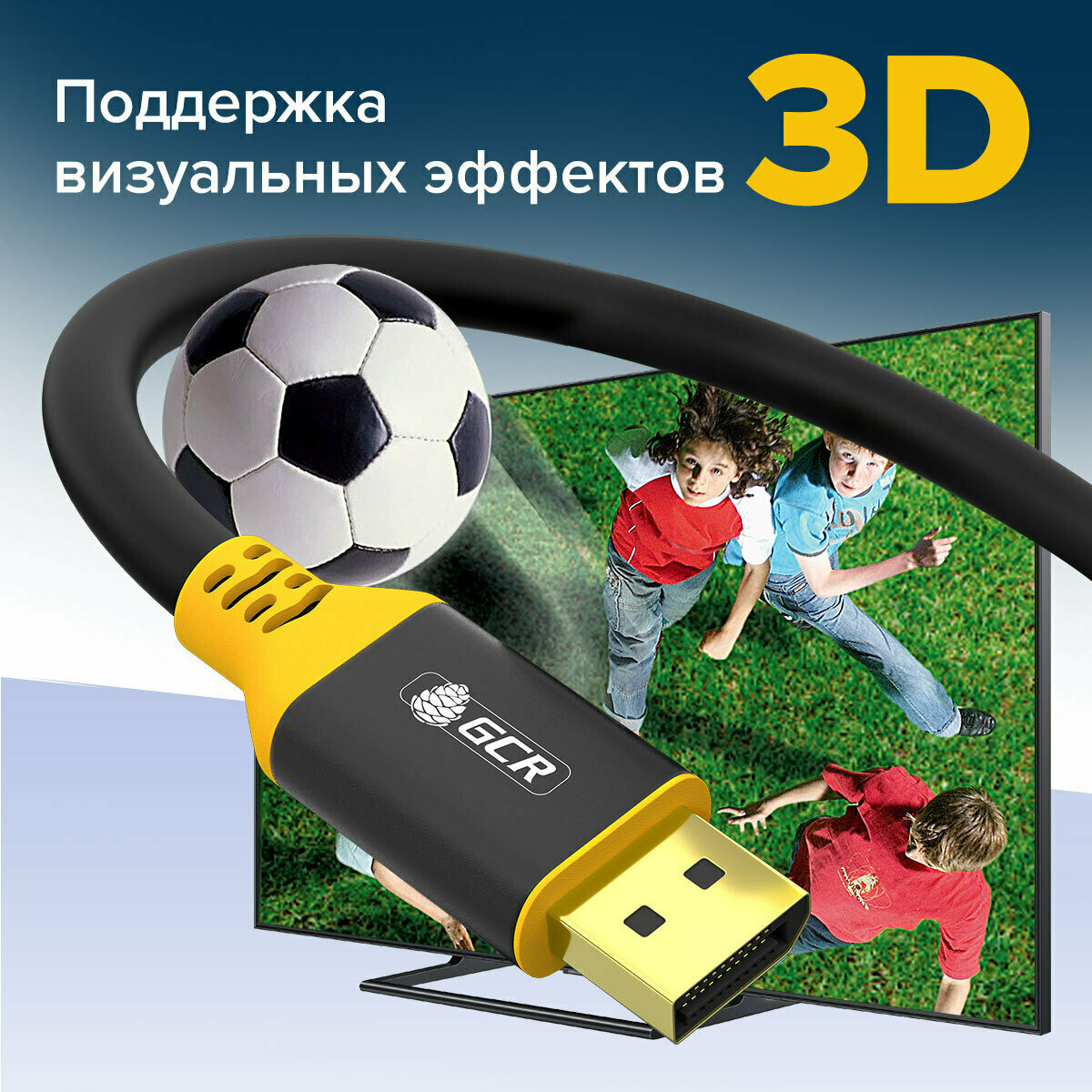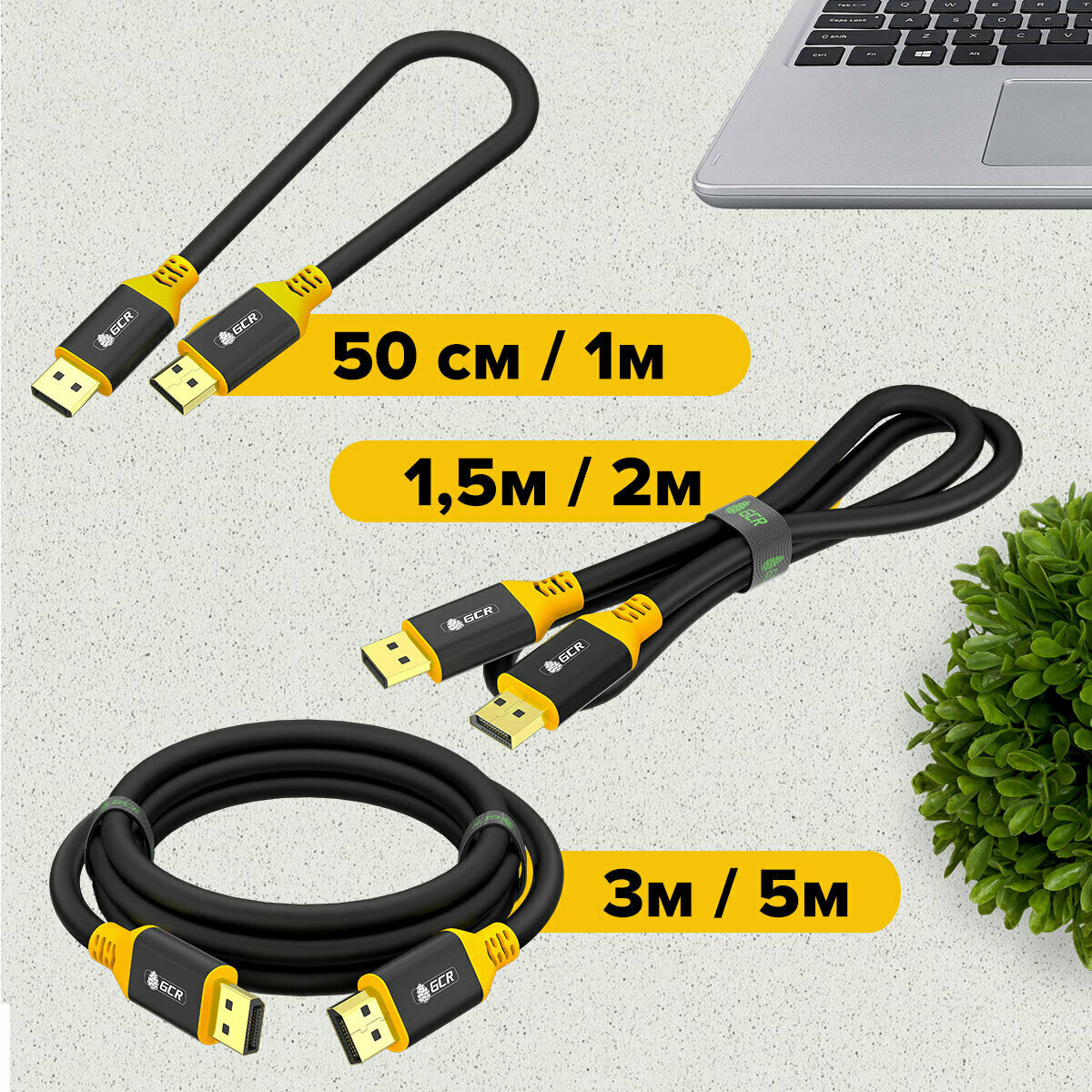 Кабель дисплей порт GCR 3 метра DisplayPort 1.4 поддержка 8K 60Hz 4K 165Hz Full HD для мониторов Samsung ACER BENQ LG HP AOC черно-желтый