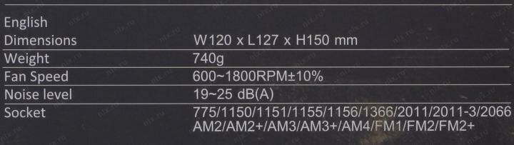 | Глубина кулера | 127 мм |