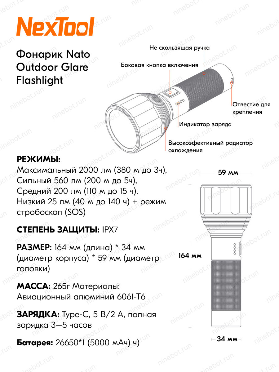 СохранитьФонарь Xiaomi NexTool Nato Outdoor Glare Flashlight NE0126 интересное: