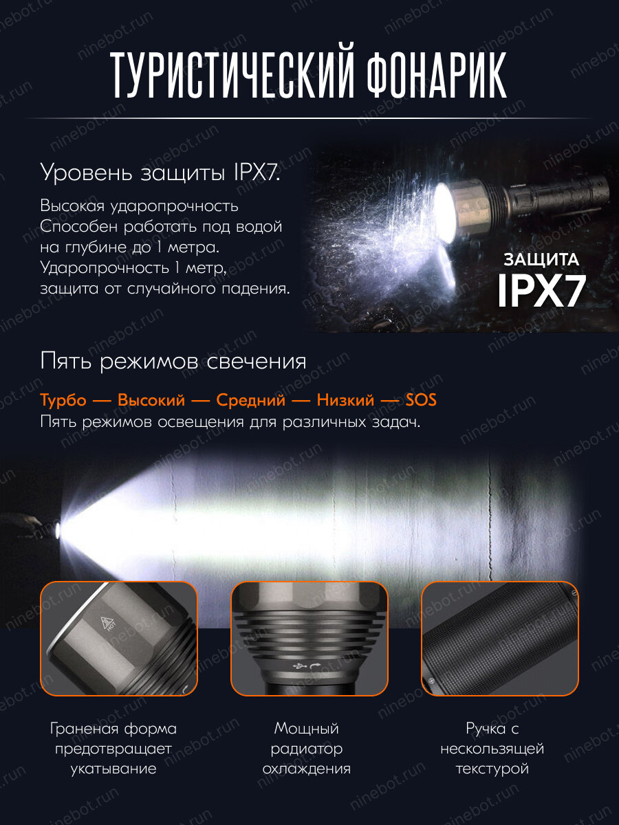 | Плюсы: | Очень яркий. Несколько режимов, в т.ч SOS |