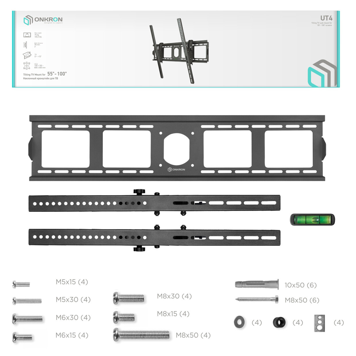 Кронштейн для телевизора Onkron UT4, 55-100", настенный, наклон, черный