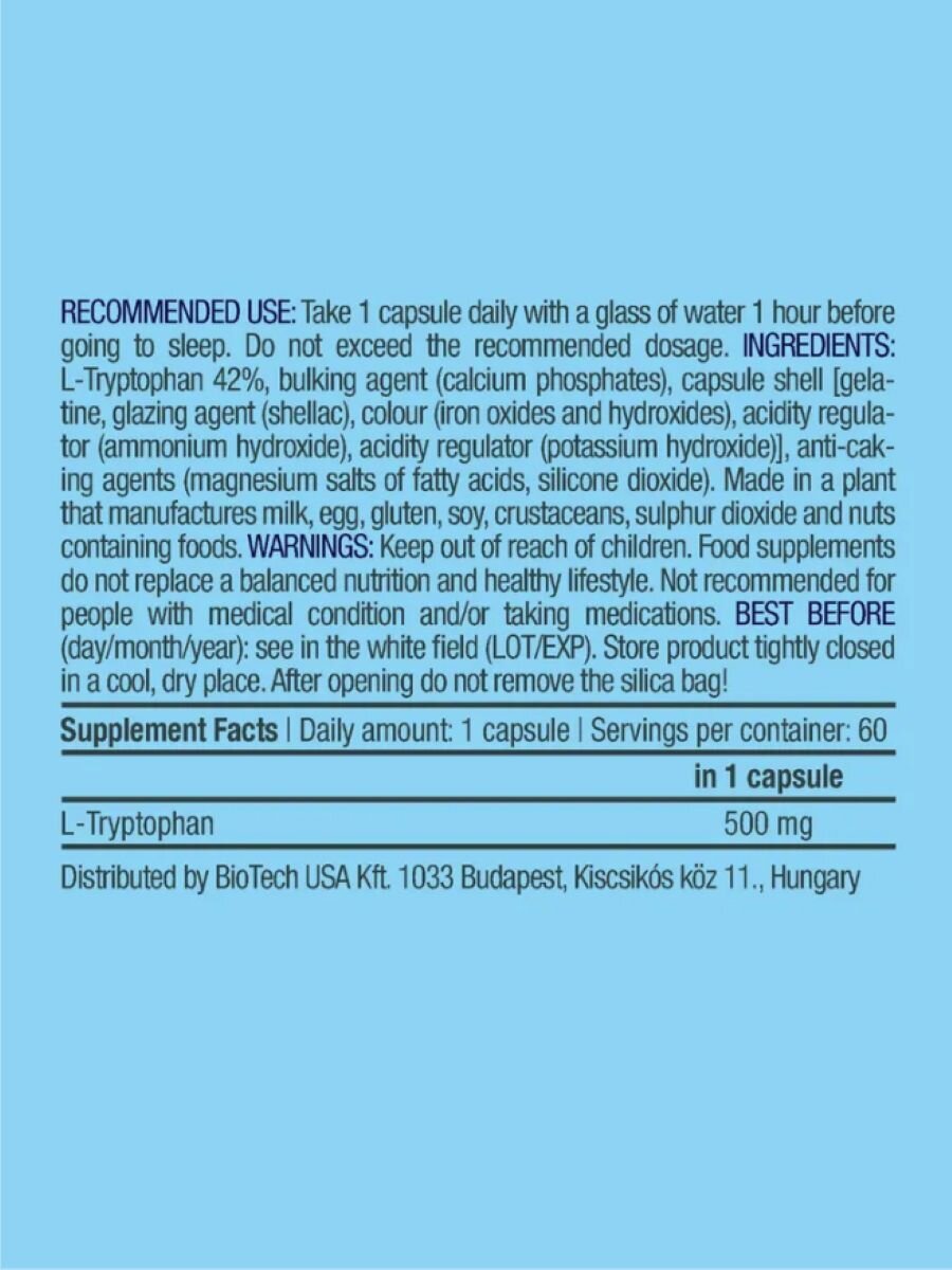 L Tryptophan 500mg BioTech 60 caps