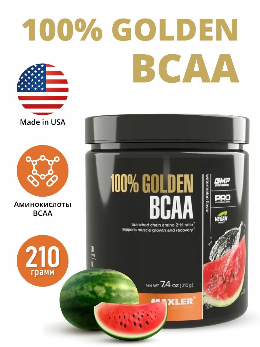 Аминокислоты Maxler 100% Golden BCAA - Арбуз, 210г - БЦАА в соотношении 2:1:1 - В форме порошка - 30 порций