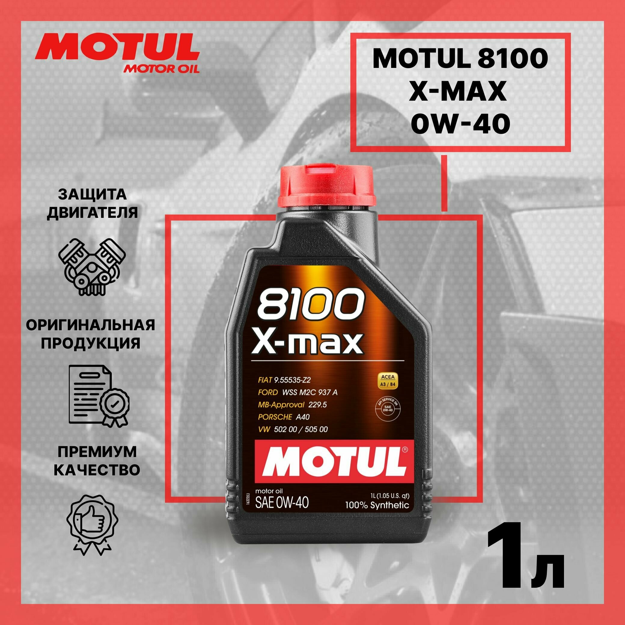 MOTUL Motul^104531 Масло Моторное Motul 8100 X-Max A3/B4, Sn/Cf 0w40 1 Л 104531