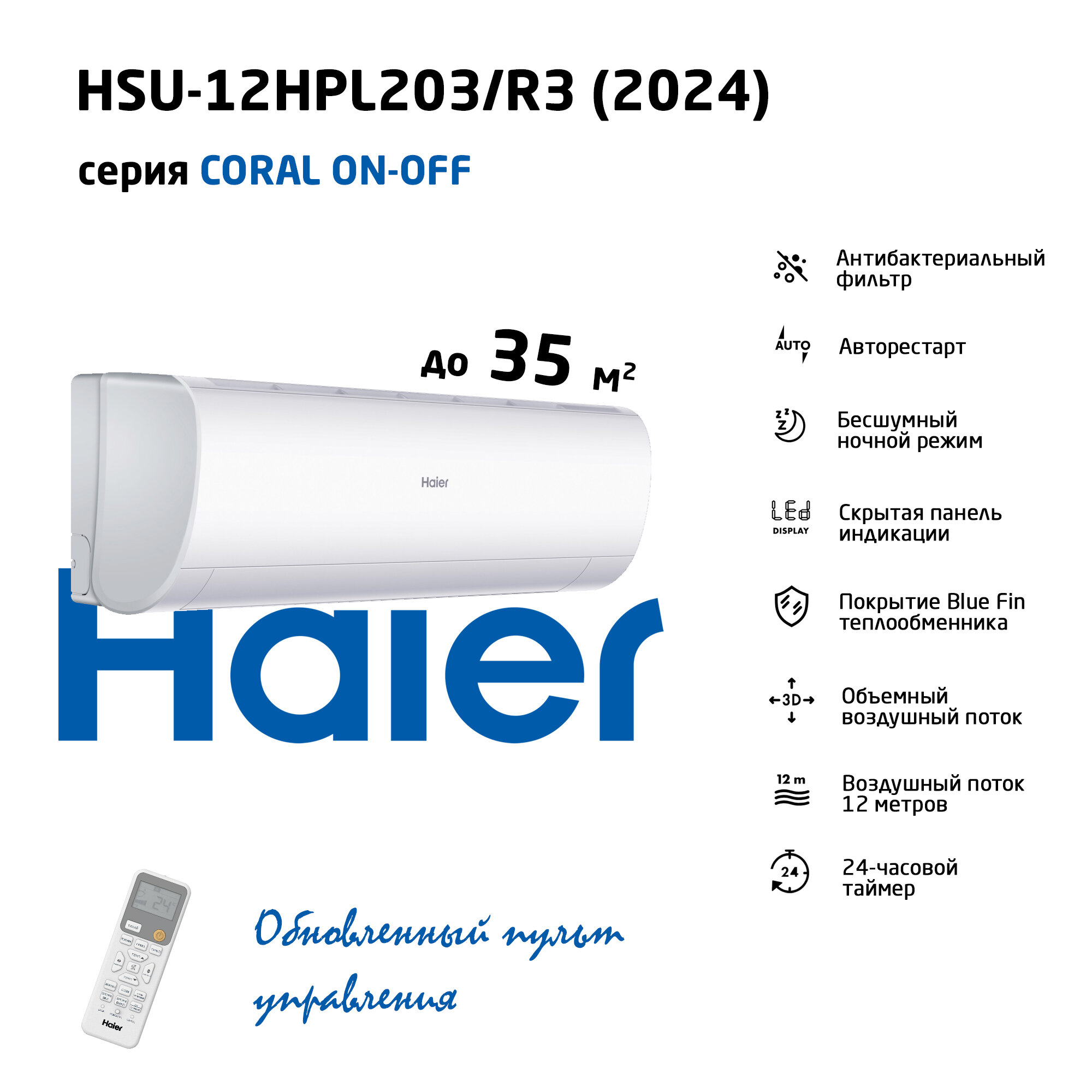 Сплит-система кондиционер HAIER CORAL ON-OFF HSU-12HPL203/R3 до 35м2, Wi-Fi новинка 2024
