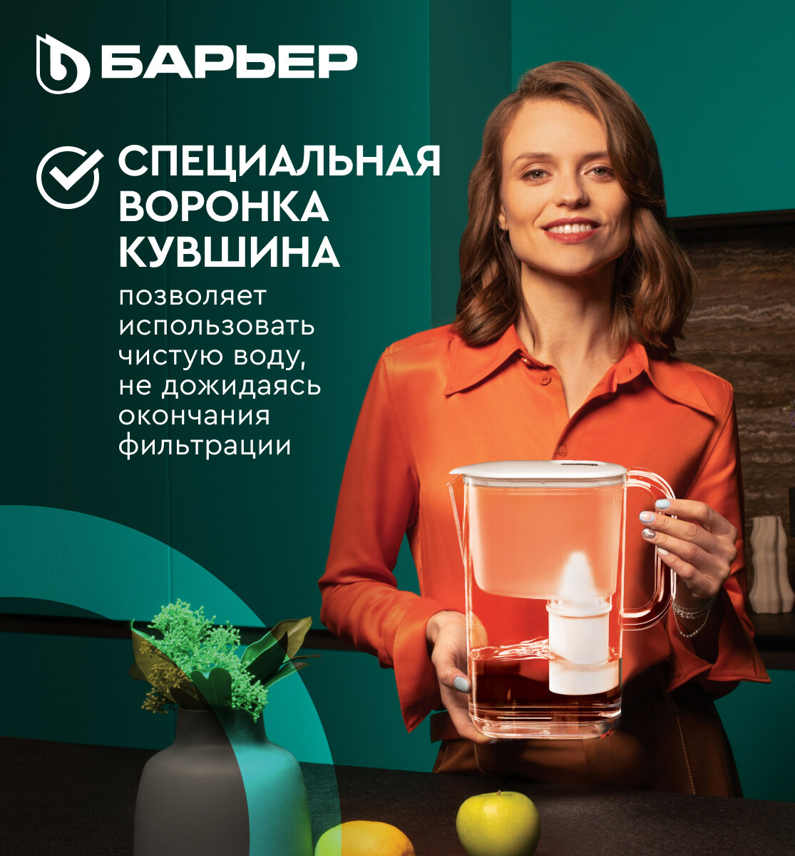 | Плюсы: | Компактный. Аккуратно выглядит. Подходят все фильтры для кувшинов Барьер |