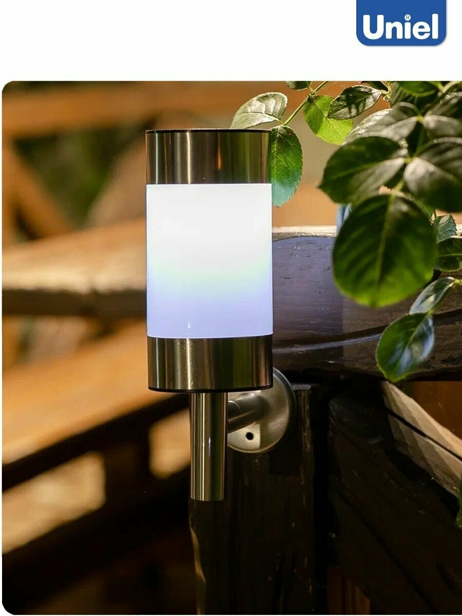 СохранитьUniel Садовый светильник Uniel Sydney на солнечной батарее, 7.5 × 22 × 11 см, свечение белое интересное: