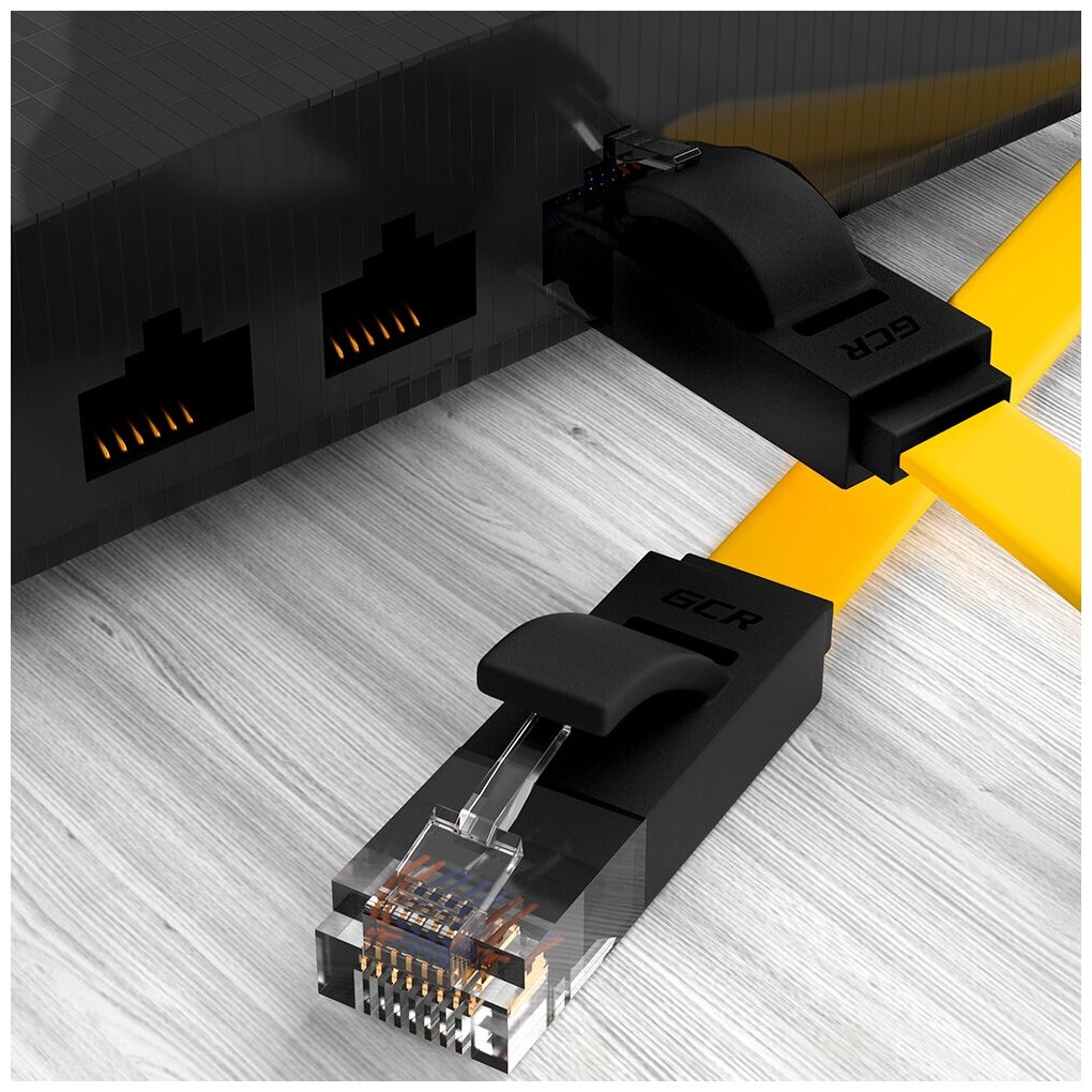 LAN кабель 15м GCR PROF плоский UTP cat.6 10 Гбит/с RJ45 LAN компьютерный кабель для интернета медный контакты 24K GOLD (GCR-LNC62) желтый