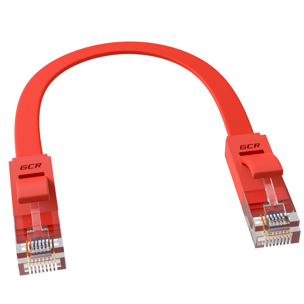 Патч-корд GCR PROF плоский UTP cat.6 10 Гбит/с RJ45 LAN кабель для интернета контакты 24K GOLD (GCR-LNC62) красный 1.0м