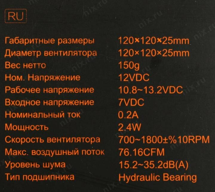 | Диаметр вентилятора | 120 мм |