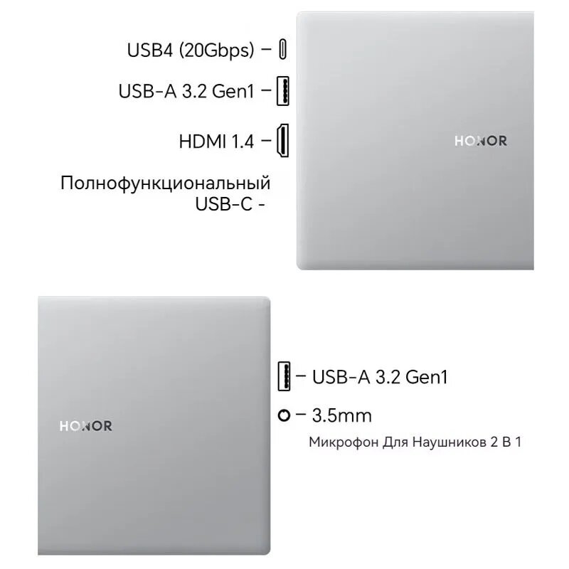 Honor MagicBook X16 Plus 2024 Ноутбук 16", AMD Ryzen 7 8845H, RAM 32 ГБ, SSD 1000 ГБ, AMD Radeon 780M, Windows 11 Pro, серебристый, Русская раскладка
