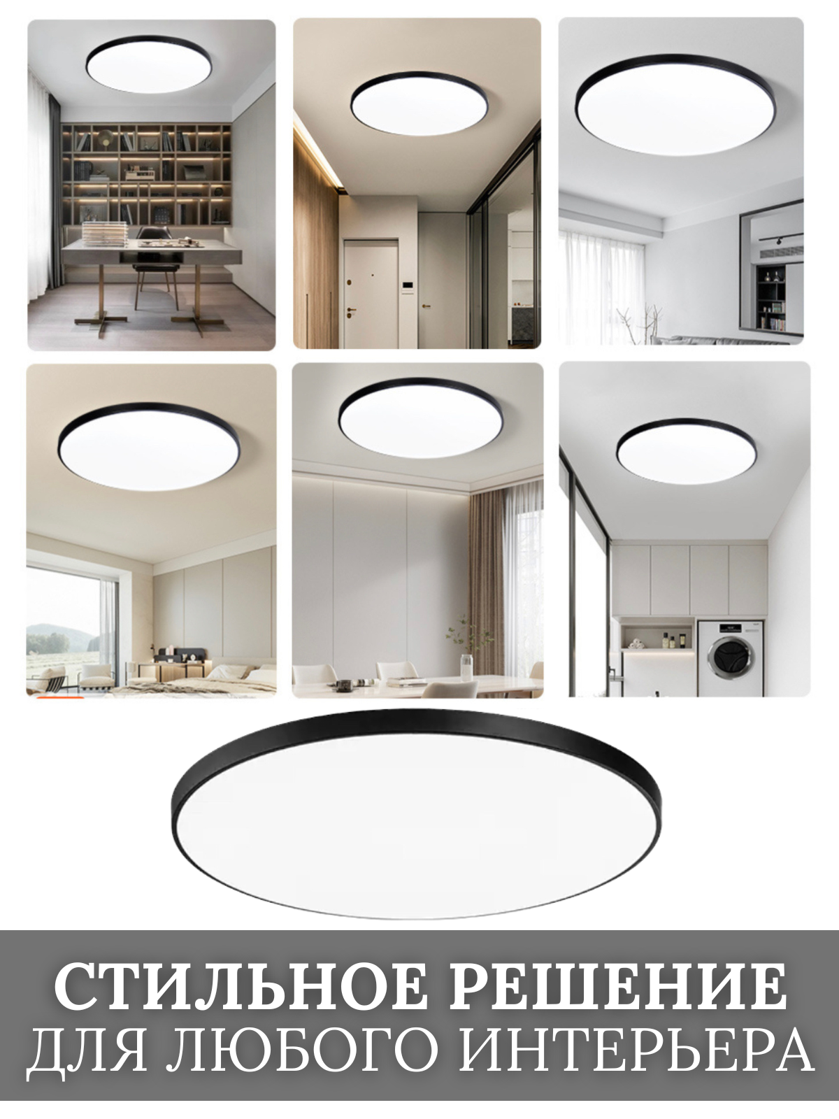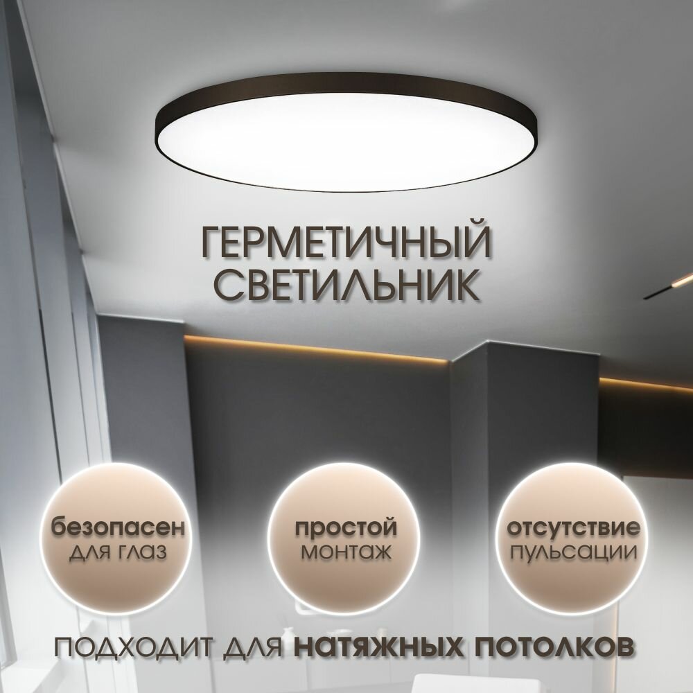 Светильник потолочный светодиодный, Люстра потолочная влагозащищенная LEEK LE LED BL, 40 Вт для ванной/ санузла/ прихожей/ кухни Черный 1шт