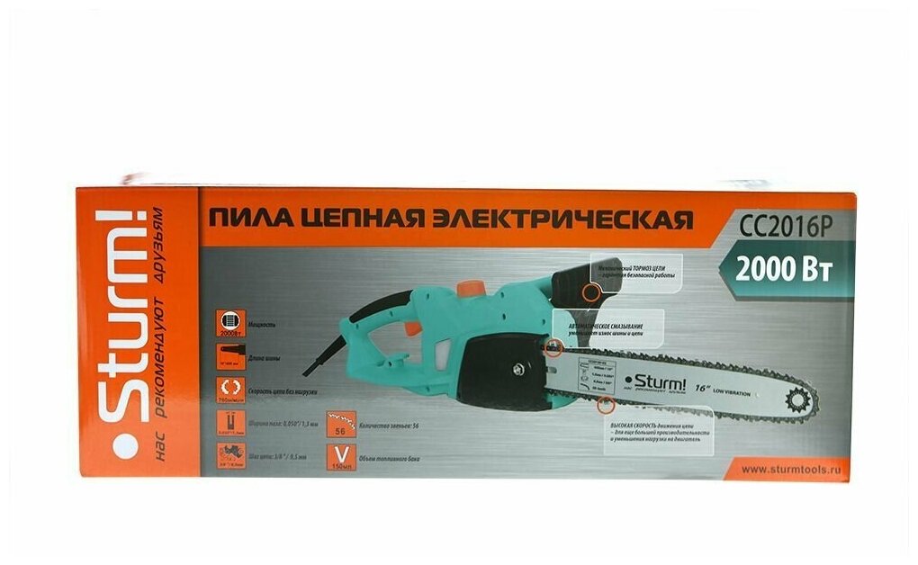 Sturm CC2016P Пила электрическая цепная , поперечный двигатель, 2.0кВт, шина 16"(405 мм) CC2016P интересное: