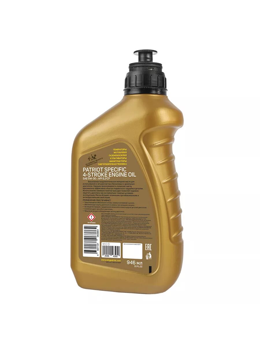 Масло 4-тактное полусинтетическое всесезонное PATRIOT SPECIFIC HIGH-TECH 5W30 SJ/CF 0.946 л