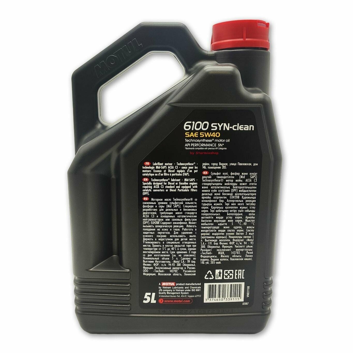 Синтетическое моторное масло Motul 6100 SYN-clean 5W40, 5 л, 1 шт