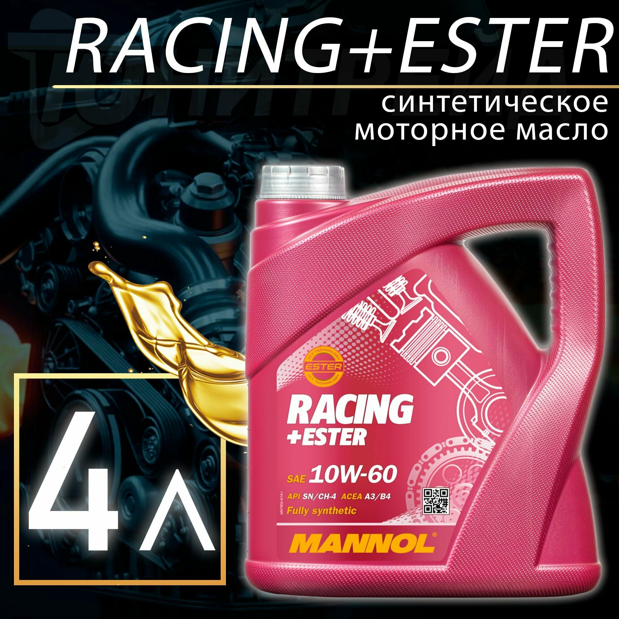 mannol racing+ester 10w-60 sn/ch-4 a3/b4 (1л) 7902
